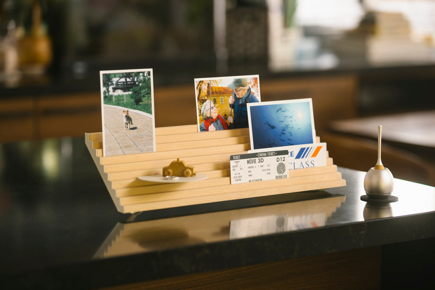 写真や小さな思い出の品を重ねて飾る「レイモリー」、澄んだ音色が静かに響く「チェリンミニ」を組み合わせたセットです。「レイモリー」は、階段状のデザインが特徴の写真立て。一枚の写真だけでなく、大切な形見や思い出の品を重ねることで、記憶を深く刻み、そばに感じることができます。「チェリンミニ」は、繊細で透明感のある音を奏でるおりん。その澄んだ響きが、静かな時間に寄り添い、記憶を穏やかに包み込みます。現代の住まいに調和する、新しいかたちの仏壇のような存在として、日々の中で想いをそっと見守ります。