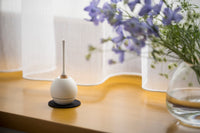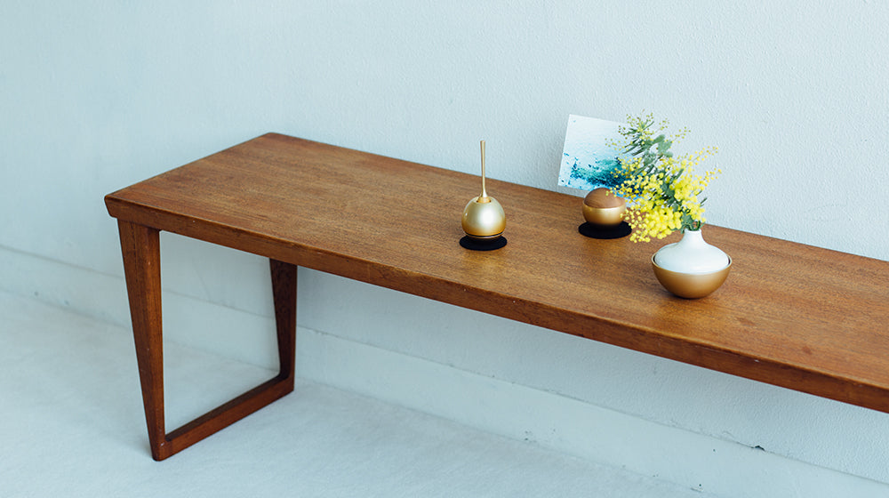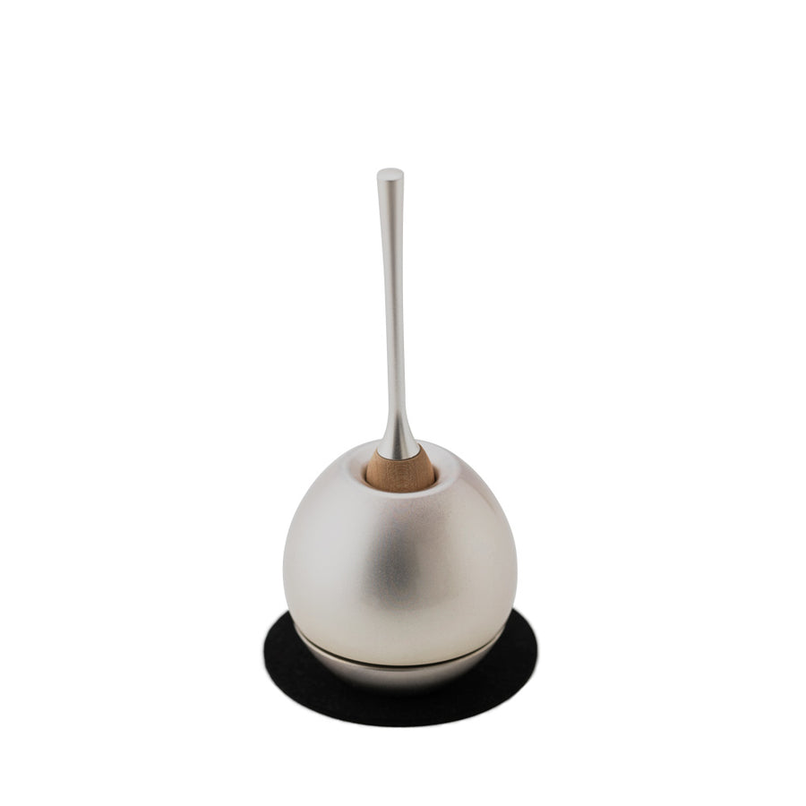 故人を思いながら鳴らすおりんの音色は目を閉じ、手を合わせる間、美しく尊く心に染み渡ります。さくらんぼのような形が愛らしい「Cherin」は、コンパクトで場所を取りませんし、佇まいはまるでオブジェのよう。上部の穴にりん棒を立てておさめるようになっていますが、叩いた後すぐにりん棒を戻しても、音が鳴り止むことはありません。黒色の敷布の上に置くことで、より美しい音色を響かせることができます。※白色はWEB限定色になります。